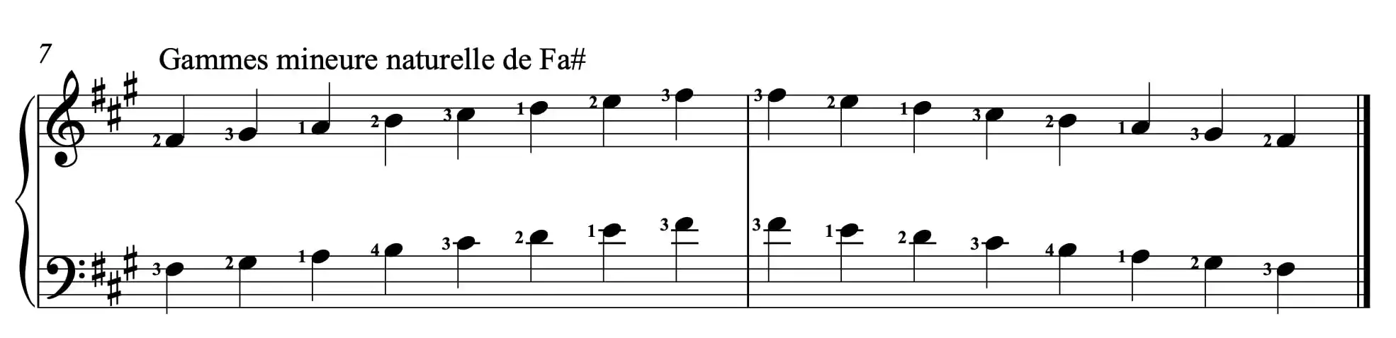 Il ne reste plus qu’à trouver les doigtés idéaux. Heureusement pour nous, la gamme majeure de La est facile : elle possède exactement le même doigté que la gamme majeure de Do. Par contre, la gamme mineure de Fa# possède quant à elle un doigté un peu plus difficile.